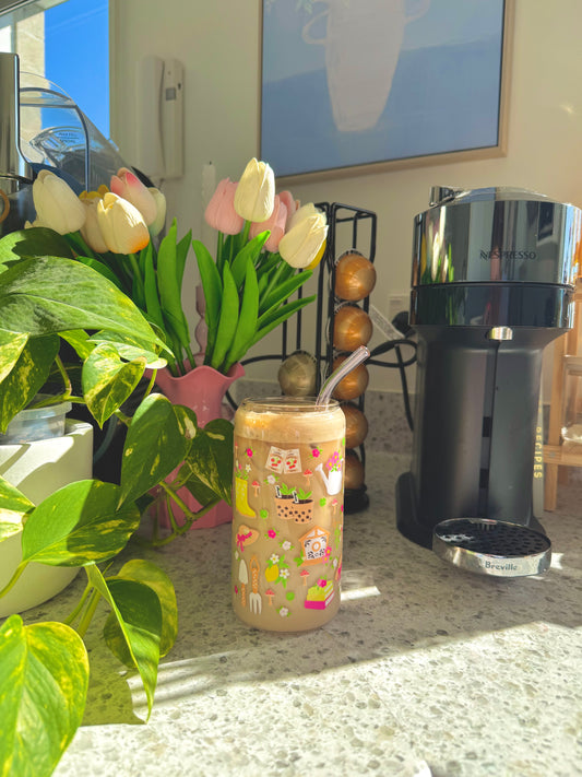 Everything you’ll find here is hand-drawn or hand-made by Leah! From glass tumblers and notepads to stickers and stationery.