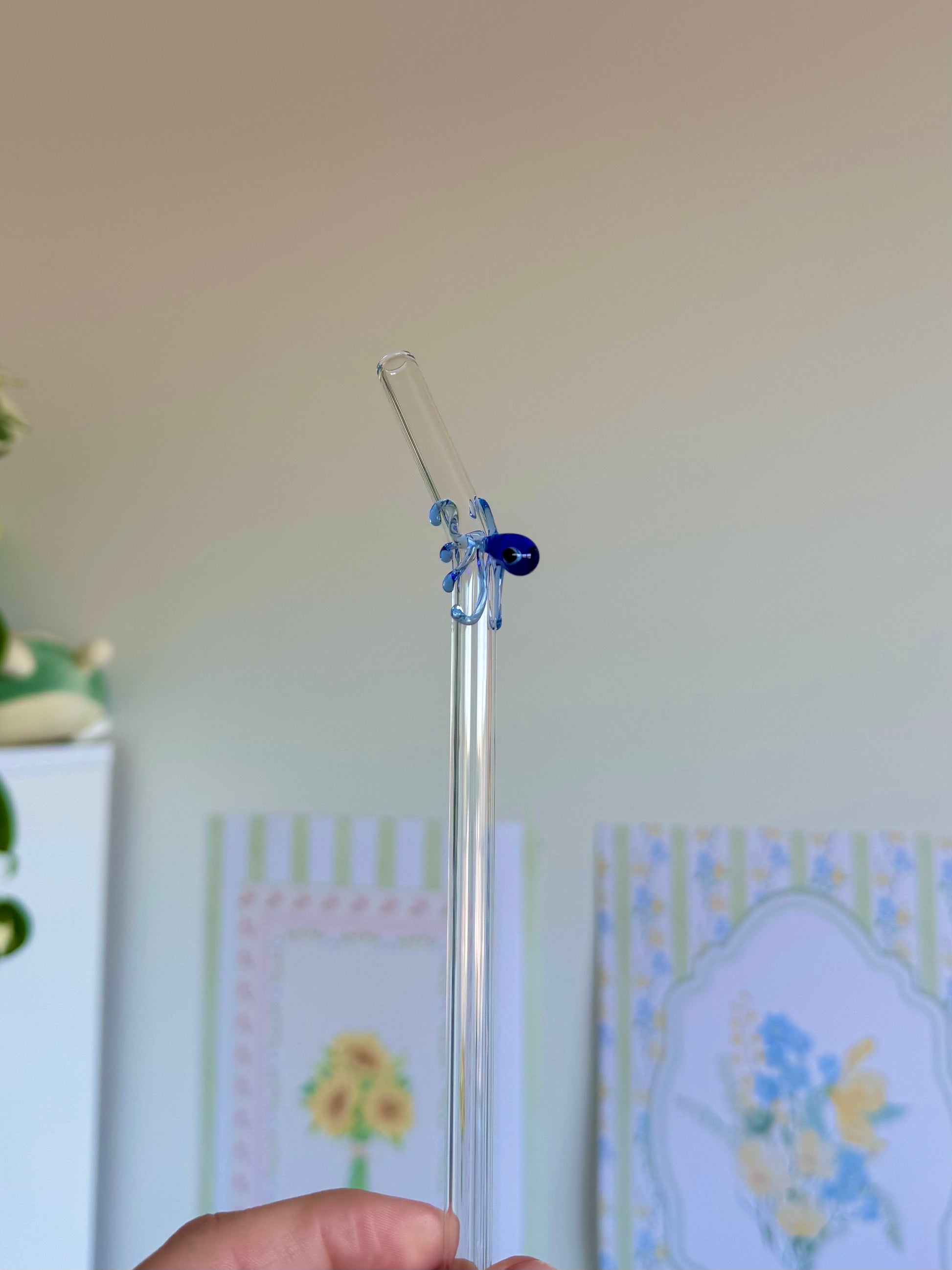 Blue Octopus Bent Glass Straw